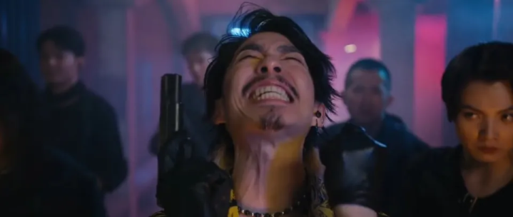 而吴建豪饰演的反派,则像是拙劣地模仿着希斯·莱杰的小丑,画着烟熏妆,全程挤眉弄眼,动不动就枪杀自己的手下。我很好奇,现实中哪个帮派老大会这么神经质?这样的老大,真的会有兄弟愿意跟着他卖命吗?